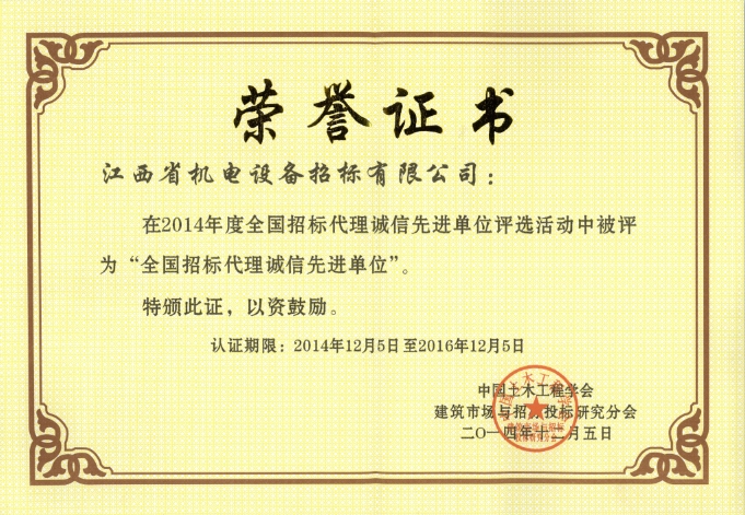 近年來,江西省機(jī)電設(shè)備招標(biāo)有限公司積極以行業(yè)“領(lǐng)頭雁”的姿態(tài),作示范、當(dāng)表率,秉承企業(yè)“規(guī)范、敬業(yè)、誠信、創(chuàng)新”的企業(yè)精神,倡導(dǎo)“做一個項目,留一個客戶”服務(wù)理念,不斷改進(jìn)服務(wù)措施,規(guī)范服務(wù)流程,提升服務(wù)質(zhì)量。自律為先,誠信服務(wù),企業(yè)規(guī)范、公正、透明的服務(wù)工作在業(yè)界樹立了良好口碑,樹立了“江西機(jī)電設(shè)備招標(biāo)”的品牌,贏得了社會各界的高度認(rèn)同。