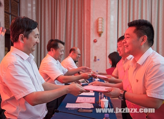 會(huì)議隆重表彰了集團(tuán)公司4個(gè)2017年度先進(jìn)基層黨組織、 8個(gè)先進(jìn)部門(mén)、10名優(yōu)秀黨員、4名優(yōu)秀黨務(wù)工作者和9名先進(jìn)個(gè)人。圖為集團(tuán)公司黨委書(shū)記、董事長(zhǎng)余鐵根等領(lǐng)導(dǎo)在為先進(jìn)基層黨組織代表頒獎(jiǎng)。