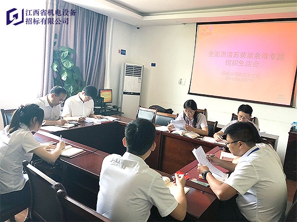 近日,江西省機電設備招標有限公司各黨支部以“肅清蘇榮案余毒”為主題分別組織召開專題組織生活會,全體黨員集中學習省委書記劉奇關于肅清蘇榮案余毒的講話精神,深入剖析蘇榮案違紀違法根源和產(chǎn)生的原因,結合自身崗位實際,把自身擺進去、把工作擺進去、把職責擺進去,逐一對照檢查并表態(tài)發(fā)言,敲響廉潔警鐘,堅決全面徹底肅清蘇榮案余毒。