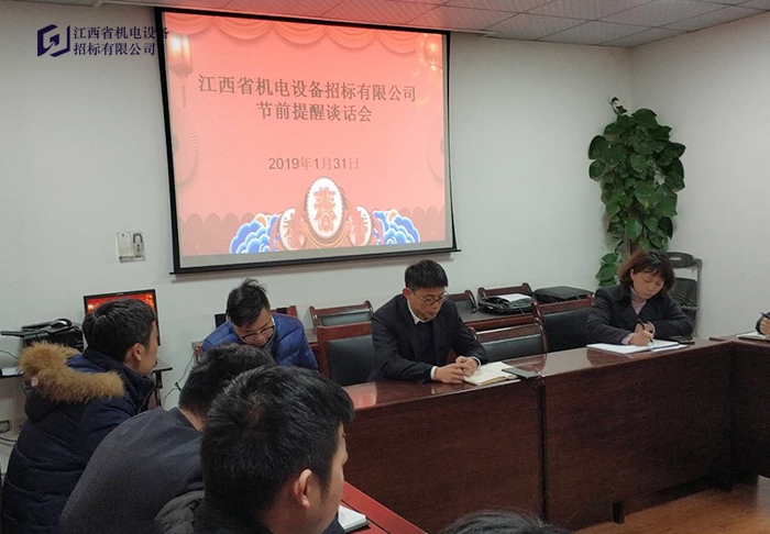 在春節(jié)即將到來之際,為加強(qiáng)干部作風(fēng)建設(shè),增強(qiáng)黨員干部廉潔過節(jié)意識(shí),筑牢拒腐防變的思想道德防線,營造廉潔、文明、節(jié)儉、詳和的節(jié)日氣氛,2019年1月31日,江西省機(jī)電設(shè)備招標(biāo)有限公司紀(jì)委在咨詢大廈616會(huì)議室組織了節(jié)前廉潔集中提醒談話會(huì),觀看了《廉年有余》廉潔宣傳片。會(huì)議由公司紀(jì)委書記虞蓉主持,公司黨委副書記、總經(jīng)理熊品燕,黨委委員、副總經(jīng)理陳裕燕、總經(jīng)理助理羅亞琪及各部門、分公司負(fù)責(zé)人參加了此次會(huì)議。