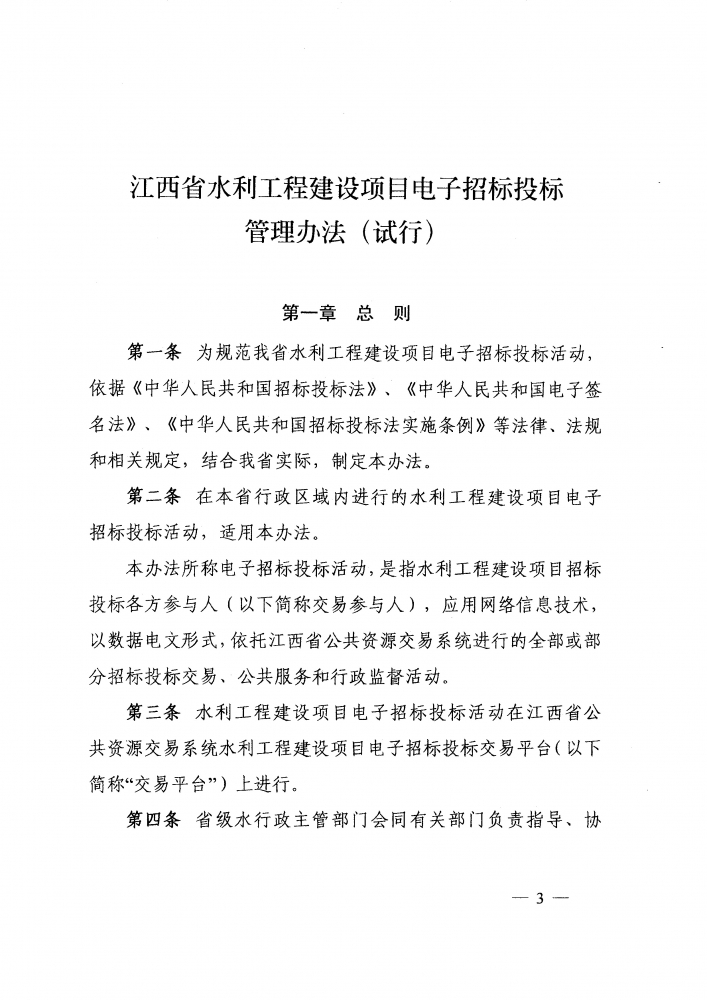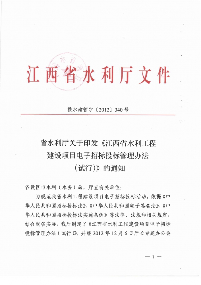 省水利廳關(guān)于印發(fā)《江西省水利工程建設(shè)項(xiàng)目電子招標(biāo)投標(biāo)管理辦法(試行)》的通知