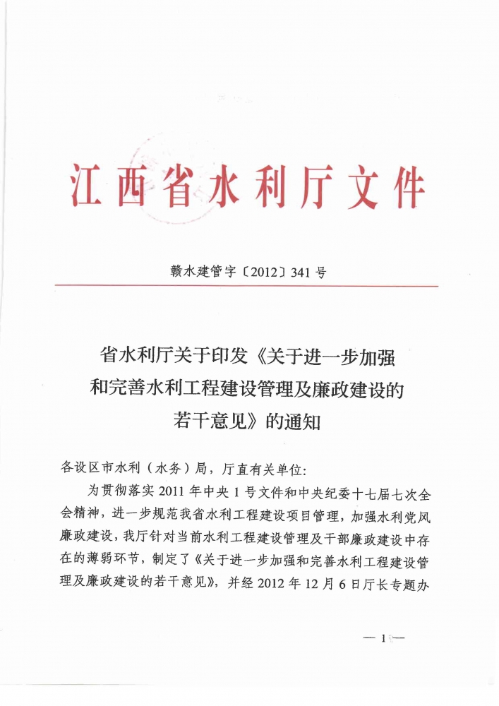 省水利廳關(guān)于印發(fā)《關(guān)于進(jìn)一步加強(qiáng)和完善水利工程建設(shè)管理及廉政建設(shè)的若干意見(jiàn)》的通知