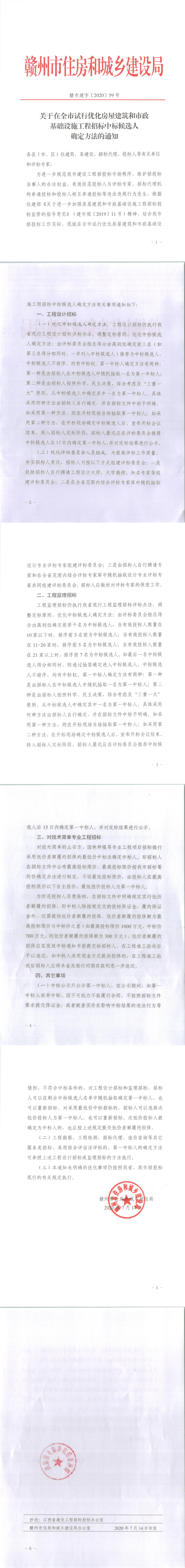 贛市建字〔2020〕 59號關(guān)于在全市試行優(yōu)化房屋建筑和市政基礎(chǔ)設(shè)施工程招標(biāo)中標(biāo)候選人確定方法的通知