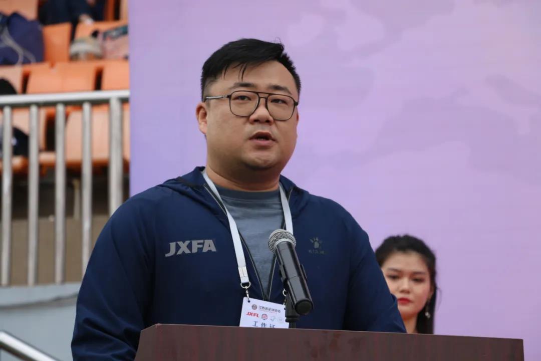 江西省體育總會秘書長盧鐵民,江西省足協(xié)主席萬國慶,江西省機電設(shè)備招標(biāo)有限公司副總經(jīng)理胡靜,江西省足協(xié)黨支部書記、副主席林毓敏,副主席、秘書長王賢敏,江西省足協(xié)副主席李愛軍,江西省足協(xié)執(zhí)委、南昌市足協(xié)秘書長蔡武,江西省贛鄱足球產(chǎn)業(yè)發(fā)展有限公司總經(jīng)理萬晨等領(lǐng)導(dǎo)出席此次開幕式。
