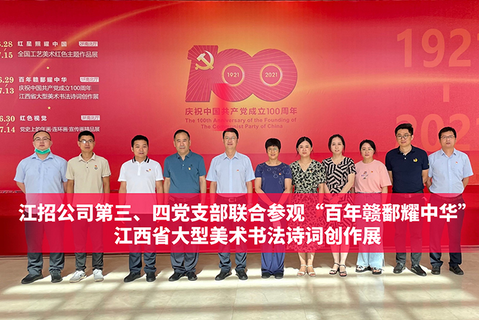 為扎實推進黨史學習教育,7月13日,江西省機電設備招標有限公司第三、第四黨支部聯(lián)合開展七月主題黨日活動,組織支部黨員干部職工共赴江西省美術館,集體參觀“百年贛鄱耀中華”——慶祝中國共產(chǎn)黨成立100周年...... READ MORE