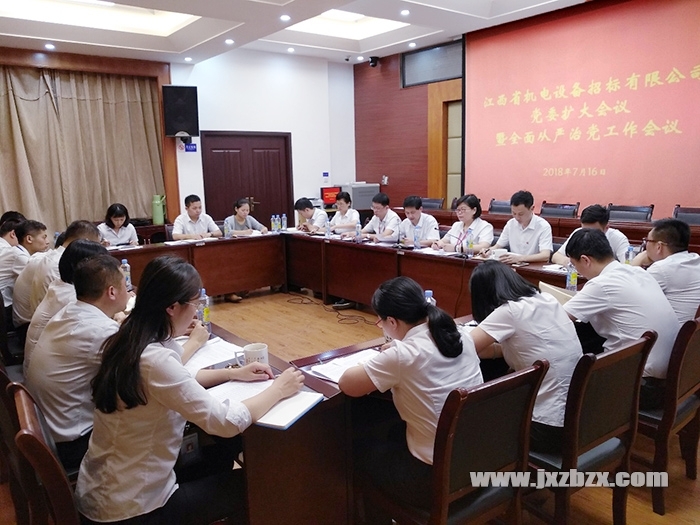 為貫徹落實中央和省委關于全面從嚴治黨的文件精神,認真做好巡視反饋問題整改工作,7月16日江西省機電設備招標有限公司召開黨委擴大會議暨全面從嚴治黨工作會議,集中學習《關于深入貫徹......