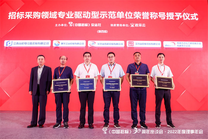 江招公司榮獲“招標(biāo)采購(gòu)領(lǐng)域?qū)I(yè)驅(qū)動(dòng)型示范單位”稱(chēng)號(hào)2022-08-25
