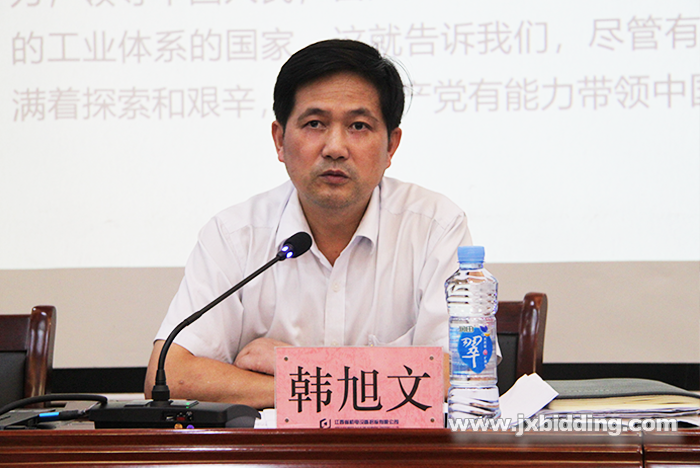 為紀念建黨九十九周年,7月9日,江西省機電設(shè)備招標有限公司(以下簡稱“機電招標公司”)在公司七樓會議室開展專題黨課活動,機電招標公司黨委書記、董事長韓旭文出席活動并授課。公司黨委委員、副總經(jīng)理胡靜主持......