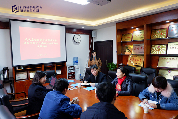 2月19日,東湖區(qū)大院街道辦事處黨委書記喻菡、主任程小浪一行到江西省機(jī)電設(shè)備招標(biāo)有限公司走訪調(diào)研,并在咨詢大廈516會議室與招標(biāo)公司領(lǐng)導(dǎo)進(jìn)行座談,公司黨委書記、董事長韓旭文,黨委副書記、總經(jīng)理熊品燕等......