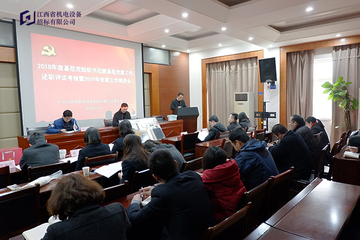2019年2月22日,江西省機(jī)電設(shè)備招標(biāo)有限公司2018年基層黨組織書記抓黨建工作述職評議考核暨2019年黨建工作推進(jìn)會在咨詢大廈七樓會議室召開。公司領(lǐng)導(dǎo)班子、各支委委員、2017年度優(yōu)秀共產(chǎn)黨員部分......