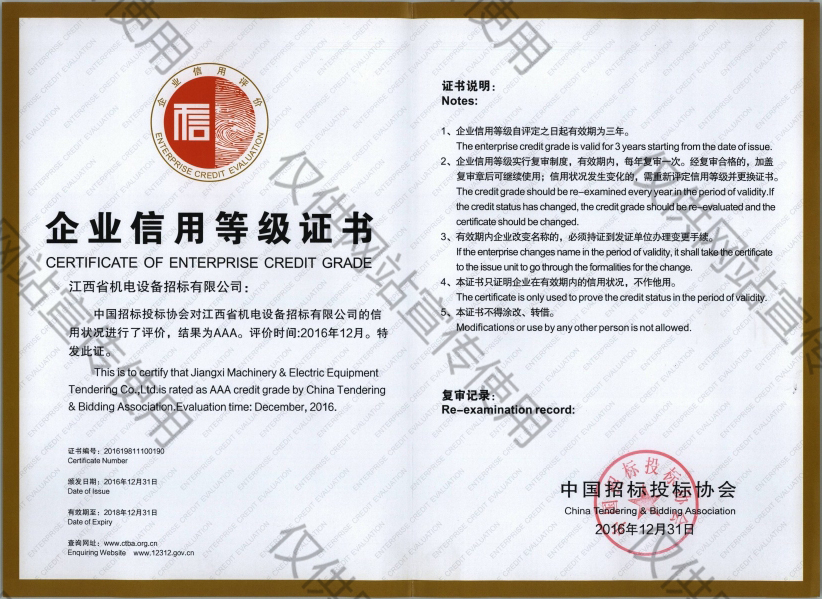 2016年企業(yè)信用等級(jí)證書