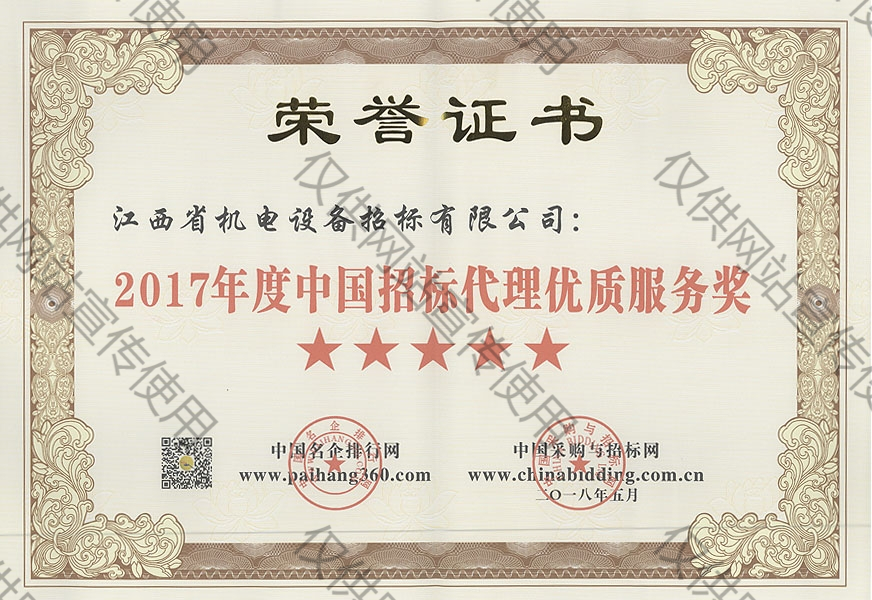 2017年度中國(guó)招標(biāo)代理優(yōu)質(zhì)服務(wù)獎(jiǎng)★★★★★