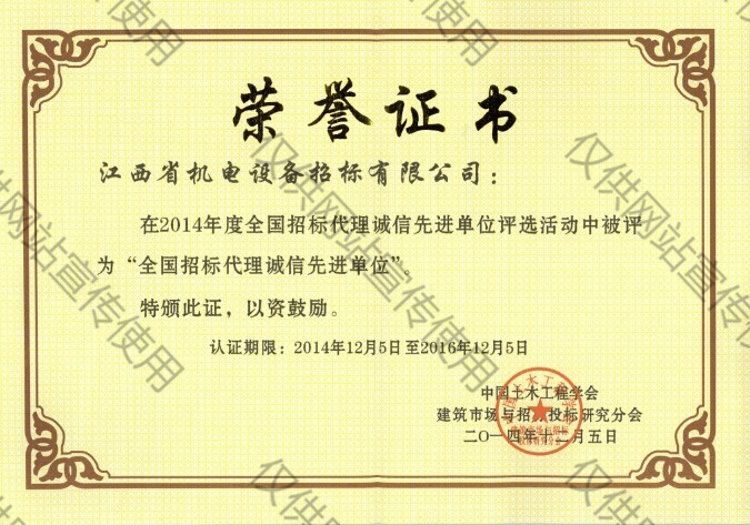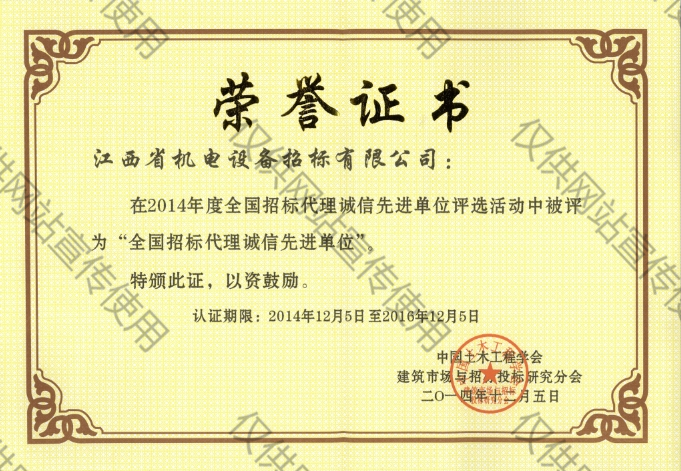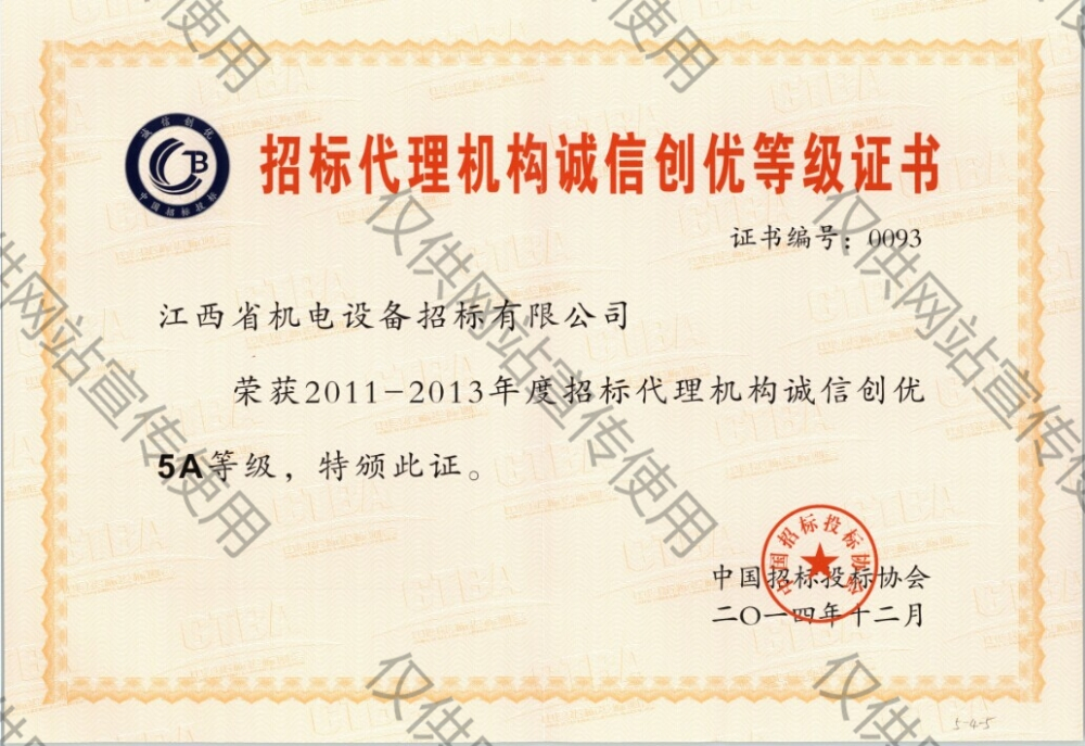 招標代理機構誠信創(chuàng)優(yōu)等級證書