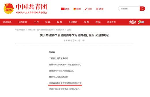 一星級全國青年文明號 2015-2016年度全國青年文明號 2019-2020年度江西省青年文明號創(chuàng)建集體